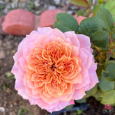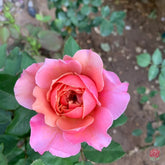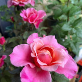 Princess Miyabi is a Japanese cutting flower rose variety. Its blooms are pink with an orange-yellow center, and the outer petals are sometimes tinged with soft purple. The flowers are large, averaging 12–15 cm in diameter, though the fragrance is relatively light. The plant typically grows 80–120 cm tall with strong, upright stems and abundant branching. It blooms throughout the seasons and is known for its prolific flowering habit.