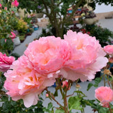 Princesse Charlène de Monaco grows to about 100 cm in height, with large, pale pink blooms around 12 cm in diameter. The flowers are richly fragrant, full-petaled with up to 70 petals, and have a lush, rounded form. It blooms repeatedly through multiple seasons and has a strong, upright growth habit, making it well-suited for creating flower walls.