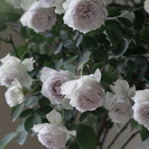Gabriel is a medium-sized floribunda rose variety, well-suited for planting in gardens or pots for ornamental purposes. The flowers are pure white with a chalice-shaped bloom, featuring evenly divided petals that create a strong sense of layering. When the flowers first open, the center is a soft lavender color, but they turn white as they fully bloom. The flowers are about 6 cm in diameter, making them medium-sized, but they are very sun- and rain-resistant, with good disease resistance.